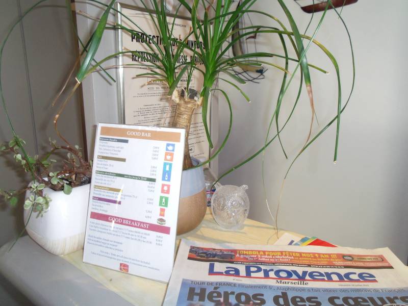 Le bar est situé dans un cadre de détente accessible à tous les clients, où vous pouvez profiter d'une télévision, d'une imprimante en libre-service à la réception, et d'une connexion fibre optique ultra-rapide, le tout gratuitement. Cet espace invite à la convivialité avec une atmosphère décontractée et familiale, parfaite pour un moment de détente ou pour une session de travail au calme.